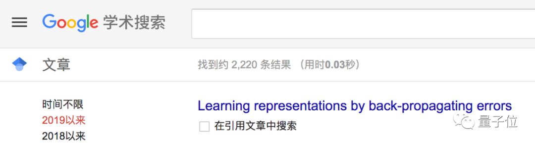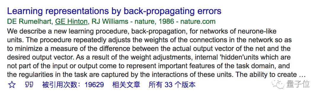 如果只算一年,比如马上结束的2019年,根据Google Scholar的结果,DE Rumelhart、GE Hinton、RJ Williams三人组的两篇反向传播论文,今年一整年的引用量加起来足足有3085次。