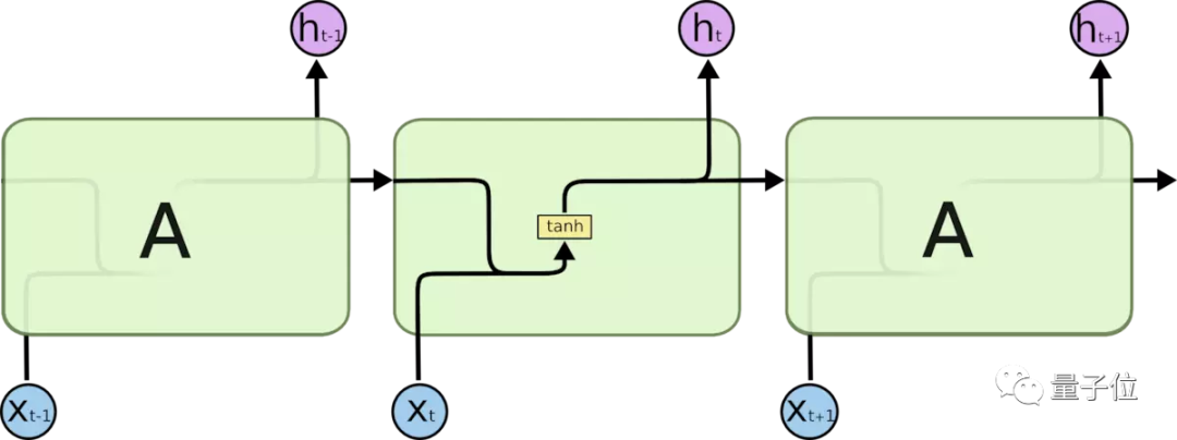 在标准的 RNN 中,这个重复的模块只有一个非常简单的结构,例如一个 tanh 层。
