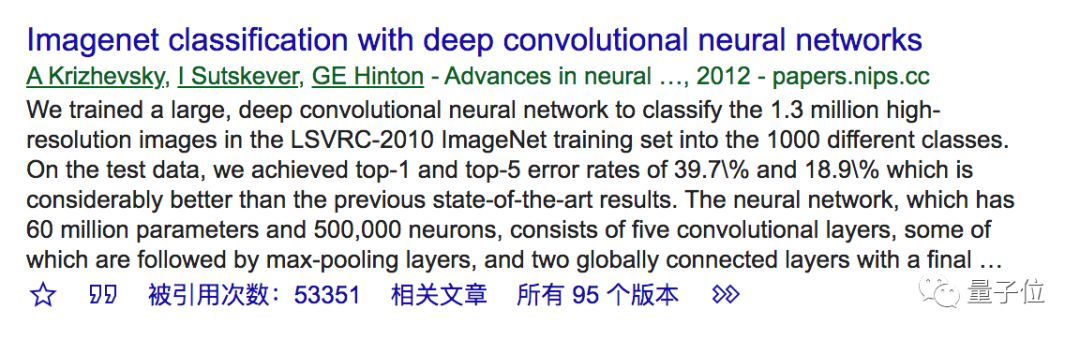 Hinton等大佬发在NeurIPS 2012上的Imagenet classification with deep convolutional neural networks,引用超过53000。