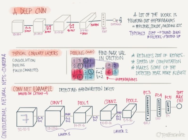 注意:一定做笔记,不能只是听或者看,一定要做笔记,记录要点,疑问,自己的想法等等,这个非常重要,是决定你能否学习好的关键。昨天看到了一位名叫Tess Ferrandez的小姐姐在推特上分享了一套自己的吴恩达老师的课程笔记,再看看我自己以前的笔记,真是非常害羞,世界上最难受的事情就是比你厉害比你努力的人做的笔记颜值也比你高,地址在这里:https://www.slideshare.net/TessFerrandez/notes-from-coursera-deep-learning-courses-by-andrew-ng