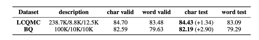 表6 LCQMC 和 BQ 语料库的评测结果