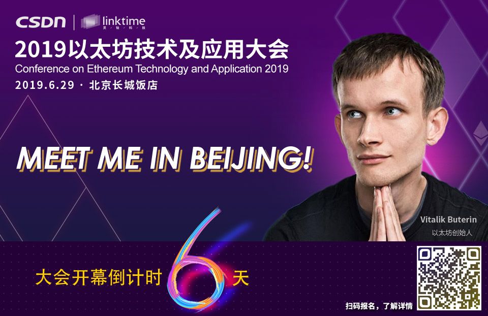 2019以太坊技术及应用大会特邀以太坊创始人V神与众多海内外知名技术专家齐聚北京,聚焦区块链技术,把握时代机遇,深耕行业应用,共话以太坊2.0新生态。即刻扫码,享优惠票价。