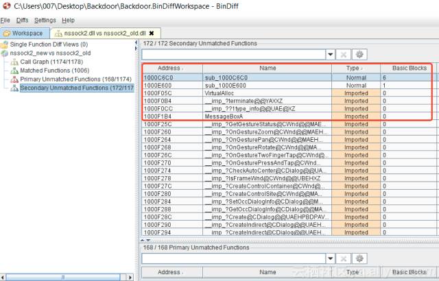 通过补丁对比,发现官方最新的nssock2.dll移除了以下几个函数,所以后门代码应该就存在于这几个函数中