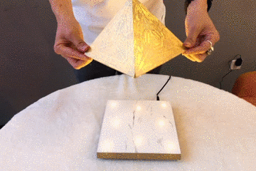 粽子先放一边,这个看起来像「金字塔」的容器其实是个悬浮灯。灯一亮、金字塔一转,科技感就扑面而来。