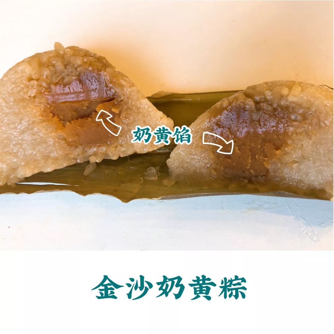 金沙应该指的是咸蛋黄,奶黄应该是奶黄包的甜馅。但这款奶黄粽两边都不靠,超妹竟然吃出一股北京豌豆黄儿的感觉。好奇的朋友可以买来试试。