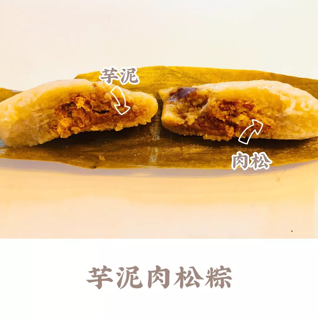 芋泥粽子就没能像紫薯那样豪迈,馅料不是很足。芋泥没有调味,存在感很弱,本来应该站C位的肉松也没能尽到自己的责任,跟芋泥一起「没味儿」了起来,于是整个粽子吃起来就像个有馅的白粽。