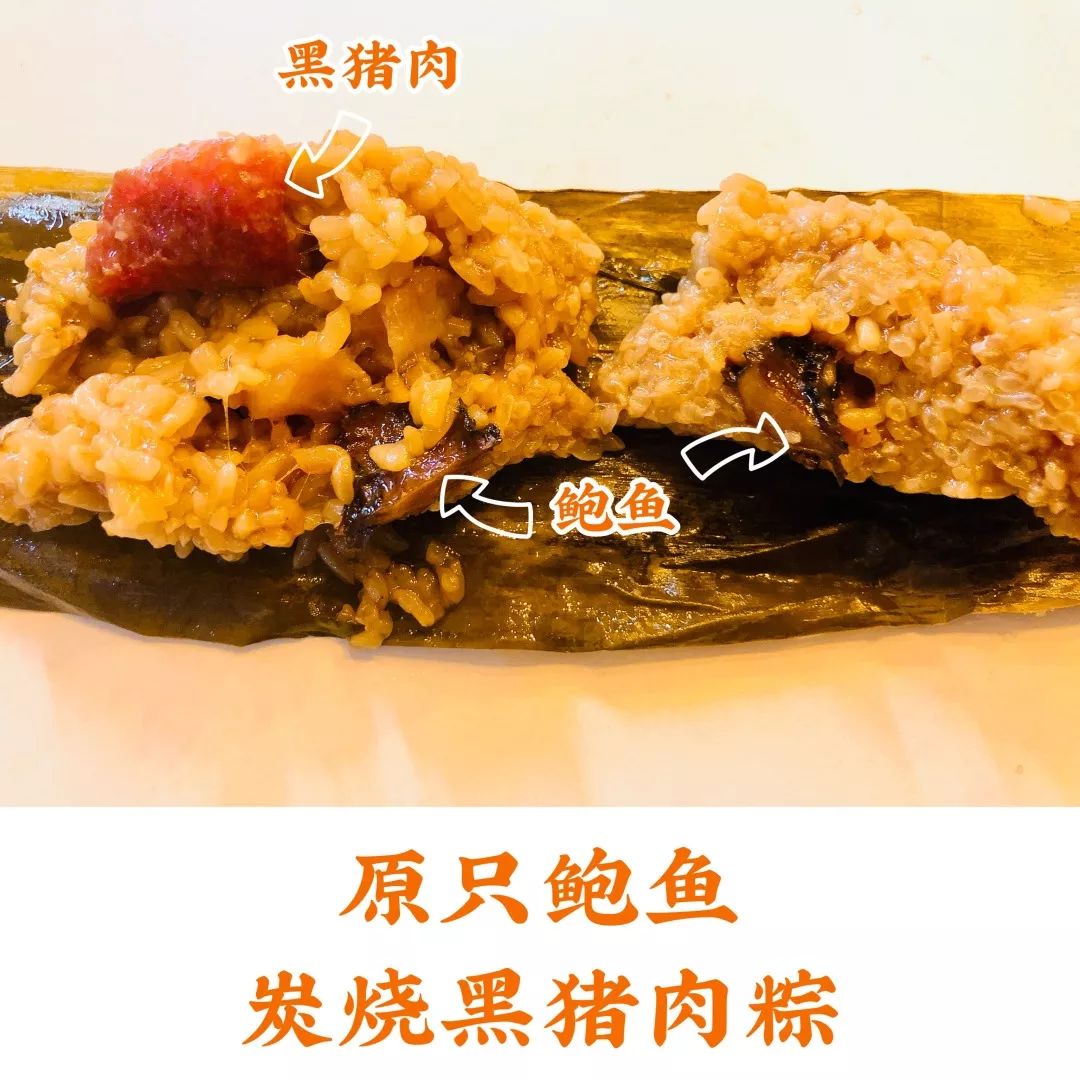 加了鲍鱼、黑猪肉的原只鲍鱼炭烧黑猪肉粽,听起来就有股雍容华贵的感觉。