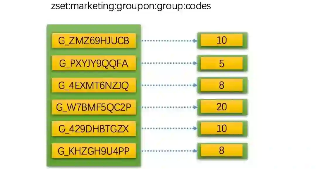下图是一个根据团购code创建的Zset,score分值就是参团人数累加和: