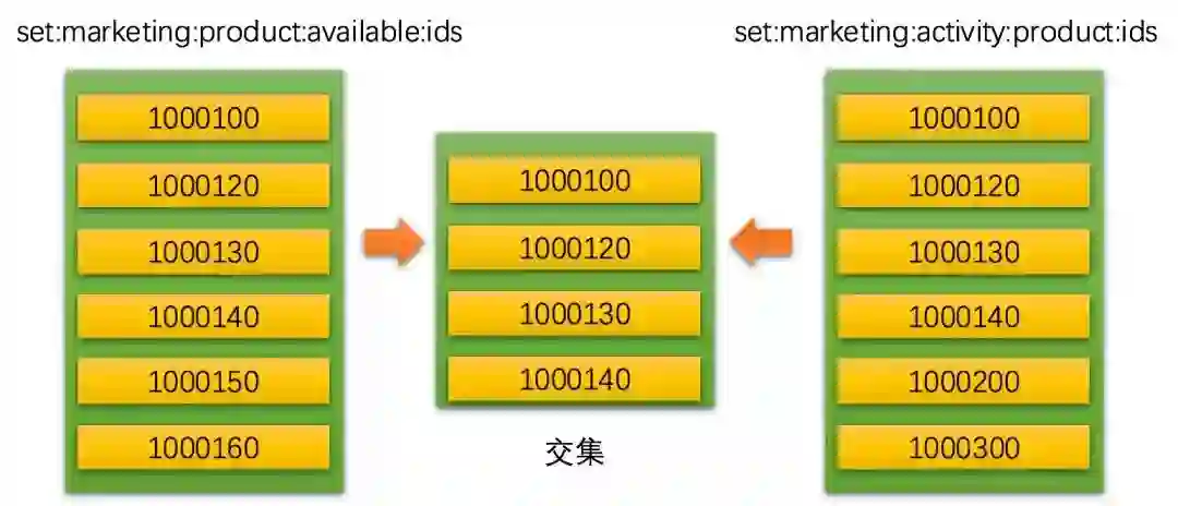 左边是营销域中的可用商品ids集合,右边是营销域中活动商品ids集合,中间计算出两个集合的交集。