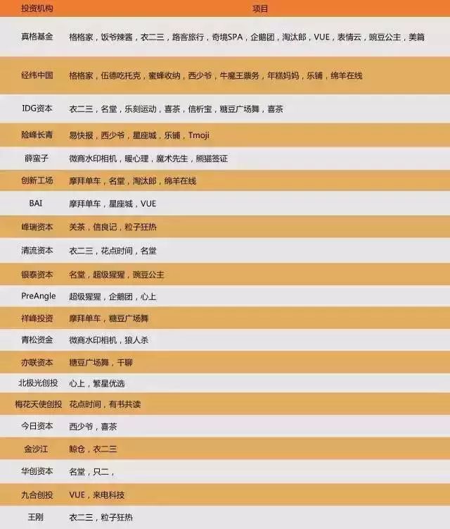 迄今为止,《1024好项目》已经全部更新完了 。这200个项目都得到了IDG资本,红杉资本中国、真格基金、创新工场、经纬中国、险峰长青等等知名投资机构的融资: