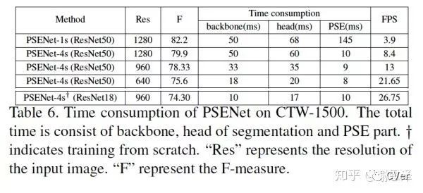 最重要的是,在压缩 backbone 和图片分辨率的情况下,PSENet 可以做到实时性检测,而检测结果同样具有竞争力,这是第一个在弯曲文字数据集上实现 >20FPS 的算法。