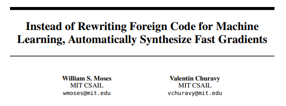麻省理工学院(MIT)提出的自动微分框架 Enzyme 在 NeurIPS 2020 大会上引起过不少人的兴趣,现在人们已经可以尝试使用这套工具了。