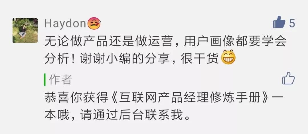 另外,获得实体书《互联网产品经理修炼手册》的Haydon同学也请尽快联系我。(就差你一个啦