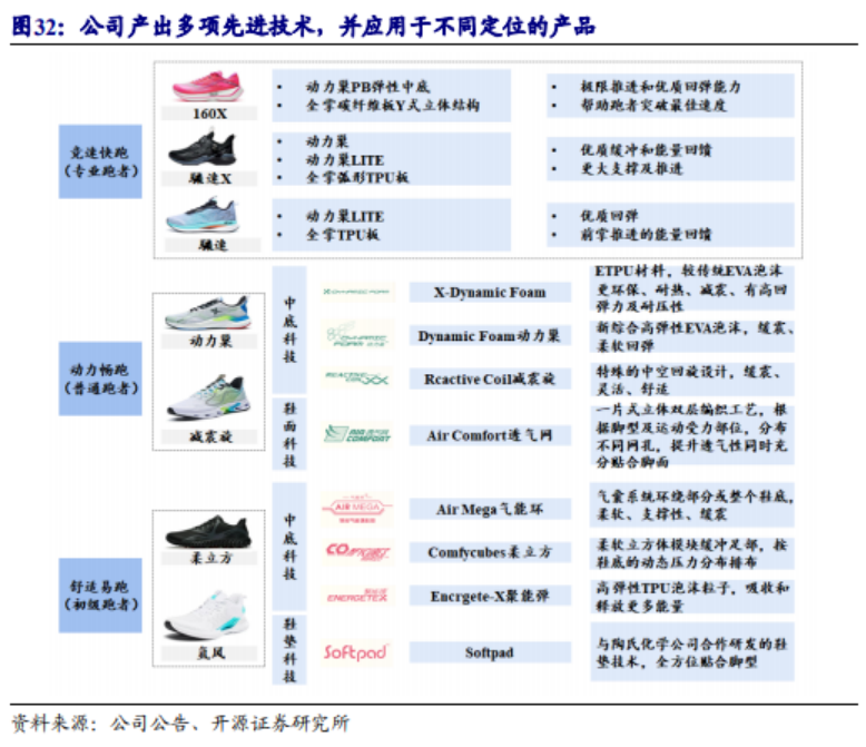 较强的产品力源自特步对技术研发的高度重视。早在2016年,特步就建立了国内首个跑步专属研究中心,产出多项先进技术,目前特步的跑鞋产品线定位全面,覆盖多种跑者群体。