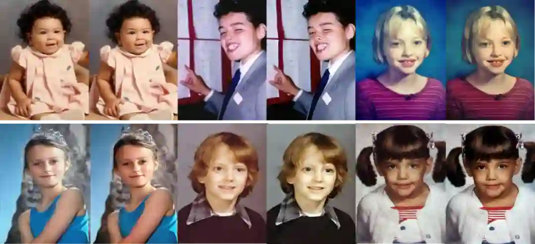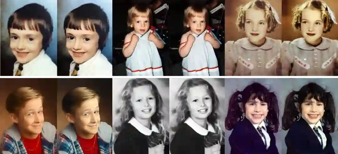 下面我们呈现更多的照片处理结果,该方法针对不同年代的图片均有理想的修复效果。