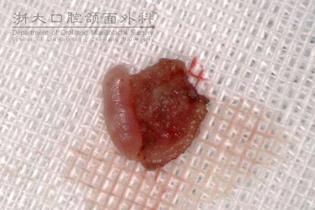 向左滑动查看左侧舌前腺及其囊肿摘除术的图片(手术图片预警,可能引起不适,晕血、胆小者慎点)