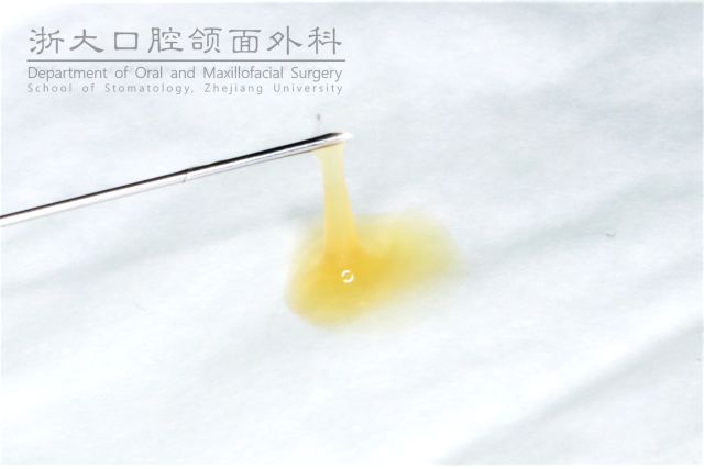口外型舌下腺囊肿穿刺可见淡黄色黏稠液体,可拉丝