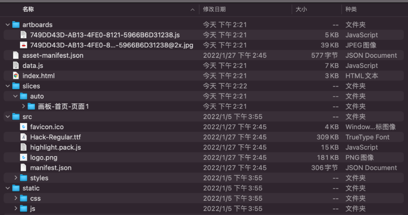 标注导出的产物主要包含两个部分,一部分是标注模板文件,另一部分包括设计稿相关数据信息,比如画板截图,图层数据、切图等。