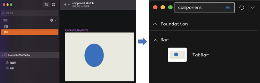 每个 Symbol 的名称遵循着标准的格式命名,名称以 / 连接,比如 Foundation/Bar/TabBar ,导入到插件后,可视化展示的效果如上图所示。