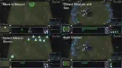 DeepMind的首次测试,先在雅达利游戏上训练神经网络和AI智能体(Agent),然后再将其应用到《星际争霸2》上。即便没有进一步的指令,用雅达利游戏训练的人工智能也可以在地图上随意走动、移动镜头、排兵布阵。