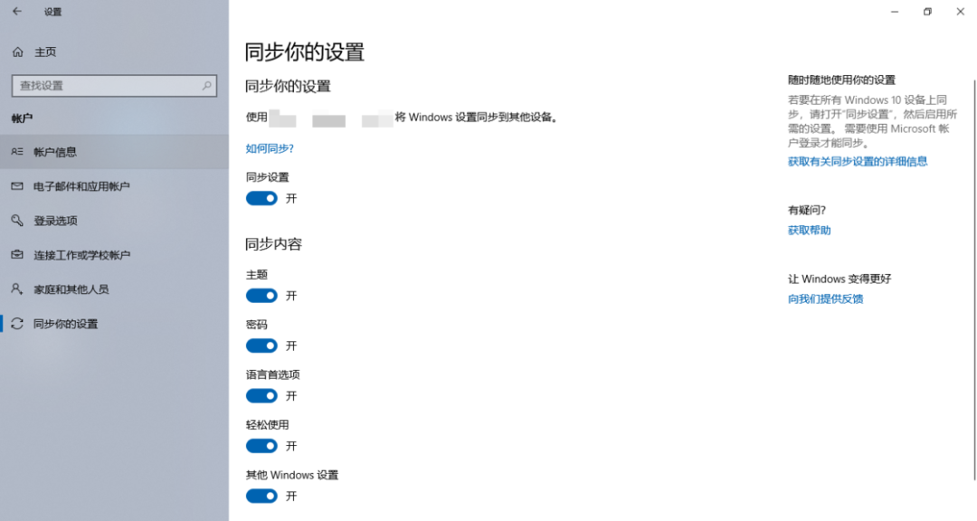 对了,如果你的帐户有连接至工作或学校帐户,则无法同步设置。遇到这种情况,需要在「连接工作或学校帐户」中断开连接即可。