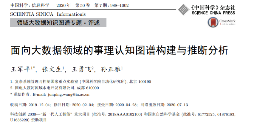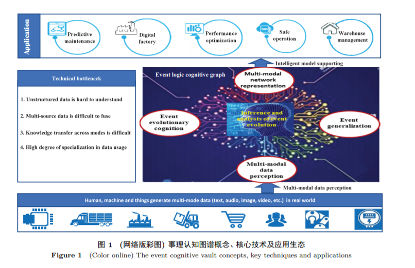 随着大数据对全球生产、流通、分配、消费等国计民生领域产生重要影响, 事理作为认知智能 重要概念, 不仅帮助人们发现大数据所蕴含的国计民生的线索与发展规律, 而且帮助人们更好认知人 机物三元世界未来发展趋势. 考虑到人机物事理动态演化是工业大数据有别于其他行业大数据处理 的本质区别, 本文从人机物事理动态演化特性智能认知着手, 结合传统知识图谱在互联网领域取得的 成功经验, 提出了面向大数据领域的事理认知图谱构建与推断分析. 首先论述了事理认知图谱对推动 认知智能研究发展的贡献, 剖析了它与知识图谱异同之处, 深度理解人类社会发展变化规律的重要价 值. 其次阐述了事理抽取与泛化、多模态联合网络化合成表示、进化认知和推断分析等关键技术研究 最新进展以及面临的挑战. 最后, 结合我们课题组在事理认知图谱的研究进展情况, 归纳总结了事理 认知图谱在预防网络电话诈骗和安全生产管控等领域最新应用效果. 本文结尾总结和展望事理认知图 谱的未来研究方向和发展前景.