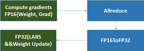 为了解决精度下降问题,机智团队引入了层次自适应速率缩放(LARS)算法。LARS算法由You et al. (2017)[3]最先提出,该算法通过对不同的层使用不同的Learning Rate,大幅度提升了大batch size场景下的训练精度,但实际测试发现,直接将LARS算法应用于半精度模型训练造成很大的精度损失,这是由于乘以LARS系数后, 很多参数因半精度数值表示范围较小而直接归0。