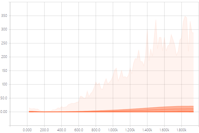 优化正则化策略后模型收敛性得到了提升,但是AlexNet还是没有达到基准准确性。通过对AlexNet训练参数和输出特征的分析,我们发现Pool5的特征分布(如下图示,颜色浅表示数据分布少,颜色深的表示数据分布多,总体看数据分布范围很广)随着迭代步数的增加,方差越来越大,分布变化很剧烈,这样会导致学习和收敛变得困难。