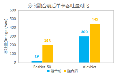 经分段融合策略后,极大提高了反向计算和传输的并行度,提升了训练速度。目前分段融合已可根据前向计算和反向计算耗时,及传输耗时,结合实际硬件配置和网络模型对传输性能进行建模,自动实现最优分段策略,自适应地选择需要合并的参数,以达到系统最佳扩展性能。