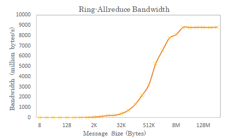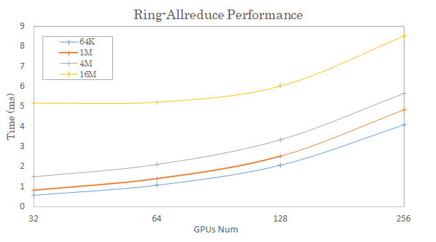 图示 Ring-Allreduce不同节点数下的传输耗时