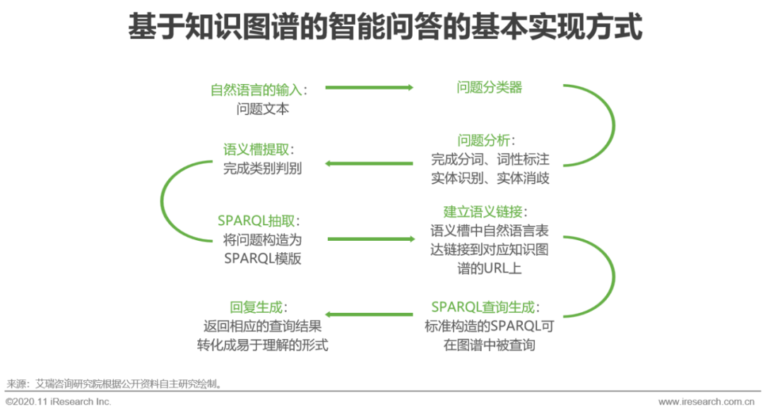 目前都已产生了成熟且广泛应用的商业产品,同时也是各领域知识图谱中的重要一环。基于知识图谱的智能搜索能对文本、图片、视频等复杂多元对象进行跨媒体搜索,也能实现篇章级、段落级、语句级的多粒度搜索。智能搜索让计算机更准确地识别和理解用户深层的搜索意图和需求,在知识图谱中查找出目标实体及其相关内容,对结果内容进行实体排序和分类,并以符合人类习惯的自然语言的形式展示,从而提高搜索体验。智能问答可以分为直接回答、统计回答和推理回答。基于知识图谱的智能问答能从实体和短句两个维度进行挖掘,能理解多样问法和有噪音问法,具有较高的准确率、召回率。在对话结构和流程设计上,能实现实体间上下文会话的识别与推理,最终实现更自然的人机交互。基于知识图谱的智能推荐则通过获得用户和物品的精确画像,从而实现准确的匹配和有针对性的推荐,实现场景化、任务型的推荐。