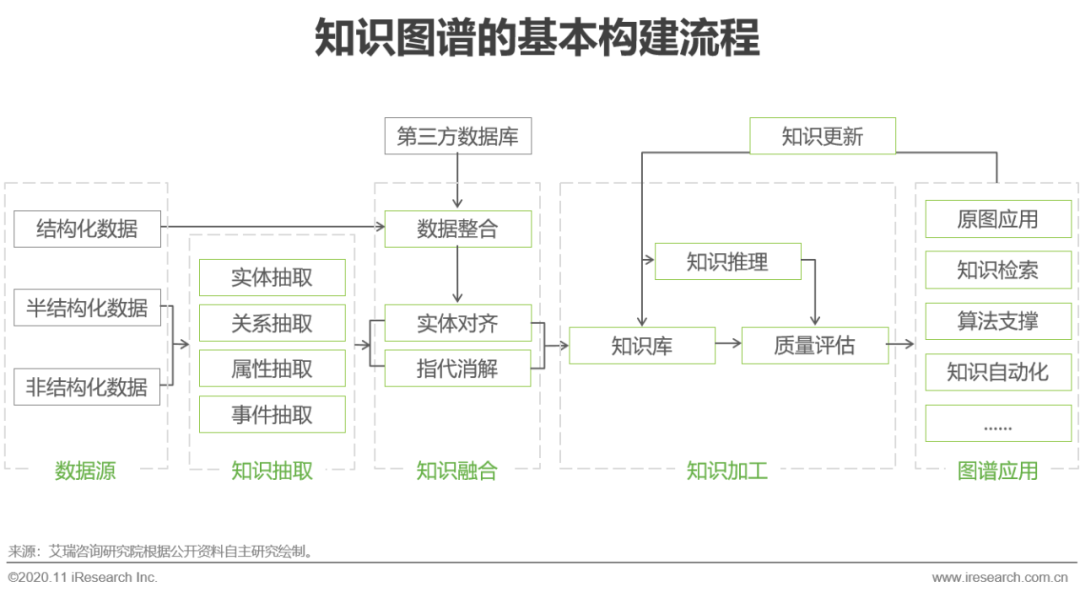 知识图谱的构建遵循知识抽取、知识融合、知识加工、知识应用的基本流程。