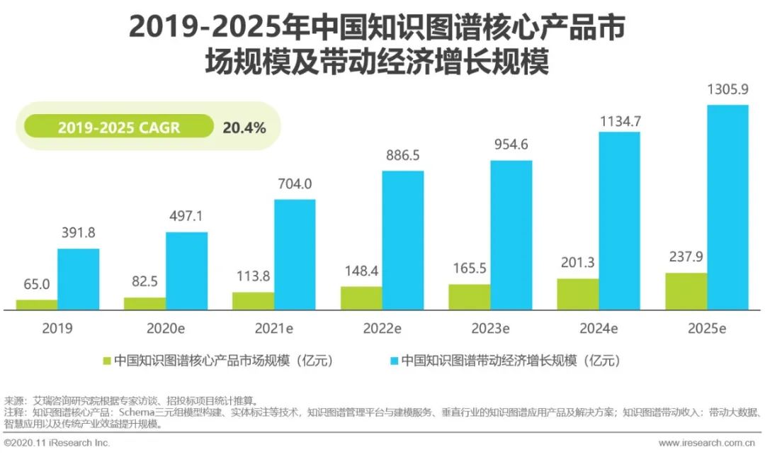 此外,知识图谱技术的应用也进一步带动传统企业智能运维效率升级,据艾瑞咨询估算,2019年中国知识图谱技术带动经济增长规模达391.8亿元,预计到2024年将突破1000亿元。