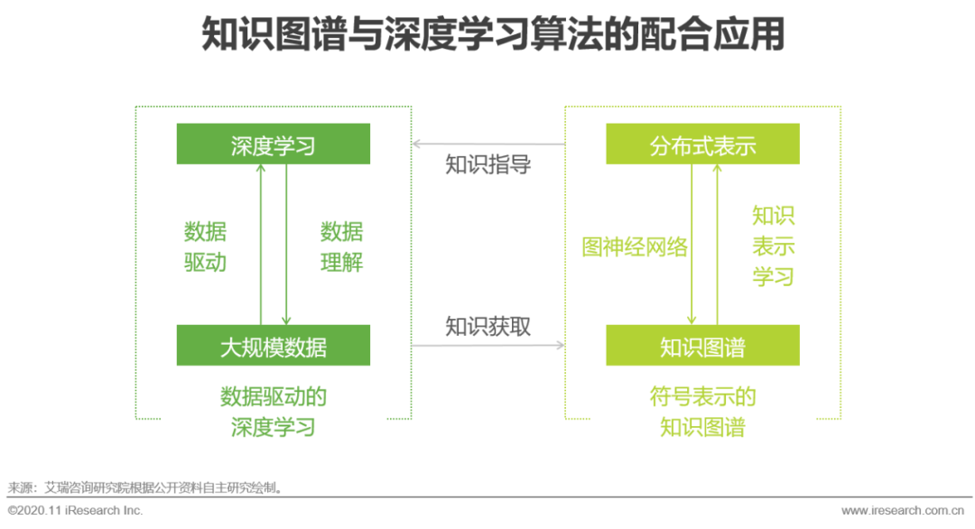 连结主义中的深度学习算法是新一代人工智能的标志性技术,但深度学习有其局限性,侧重解决影响因素较少、但计算高度复杂的问题,而不太适宜解决影响因素较多、且掺杂众多非线性关系的问题。通过与知识图谱的配合使用,依托于行业知识与经验的深度学习将产生更多贴近产业核心的认知智能应用,