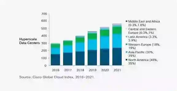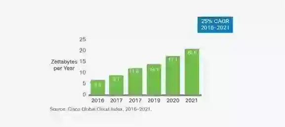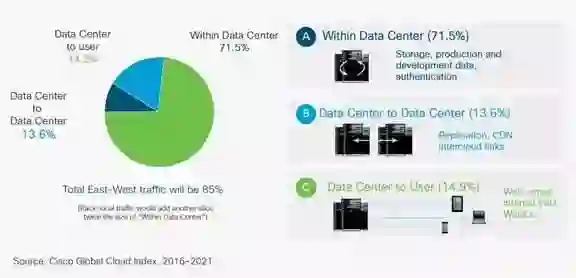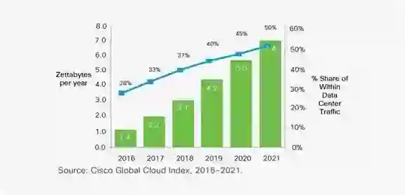 数据中心管理的改善和数据控制大幅降低了企业风险,且能更好地保护消费者信息,克服云部署过程中的多个关隘。在2021年,思科预测94%的工作和计算任务会通过云数据中心进行处理。