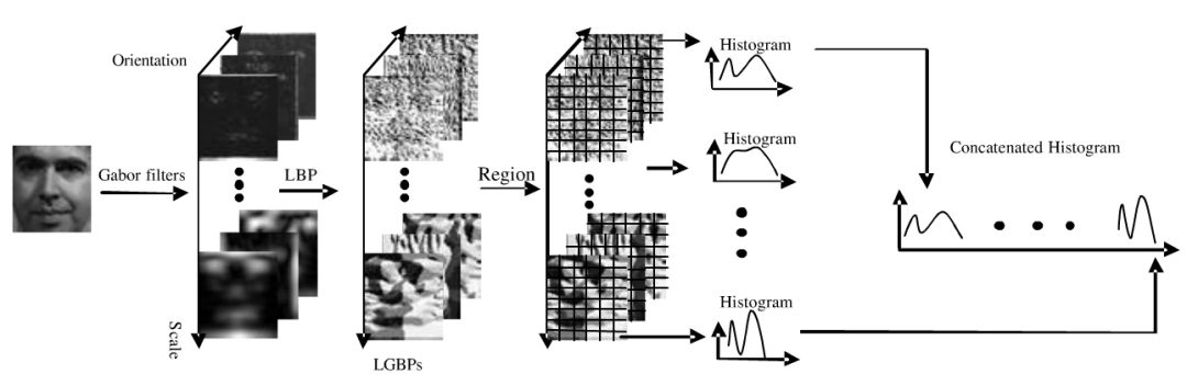 有作者利用局部Gabor二值模式(LGPB)和KL散度被用来进行遮挡人脸识别。LGBP用于把人脸图像转换为多尺度图像,然后得到每一局部成分的直方图,随后将它们合并形成一个全局特征向量。