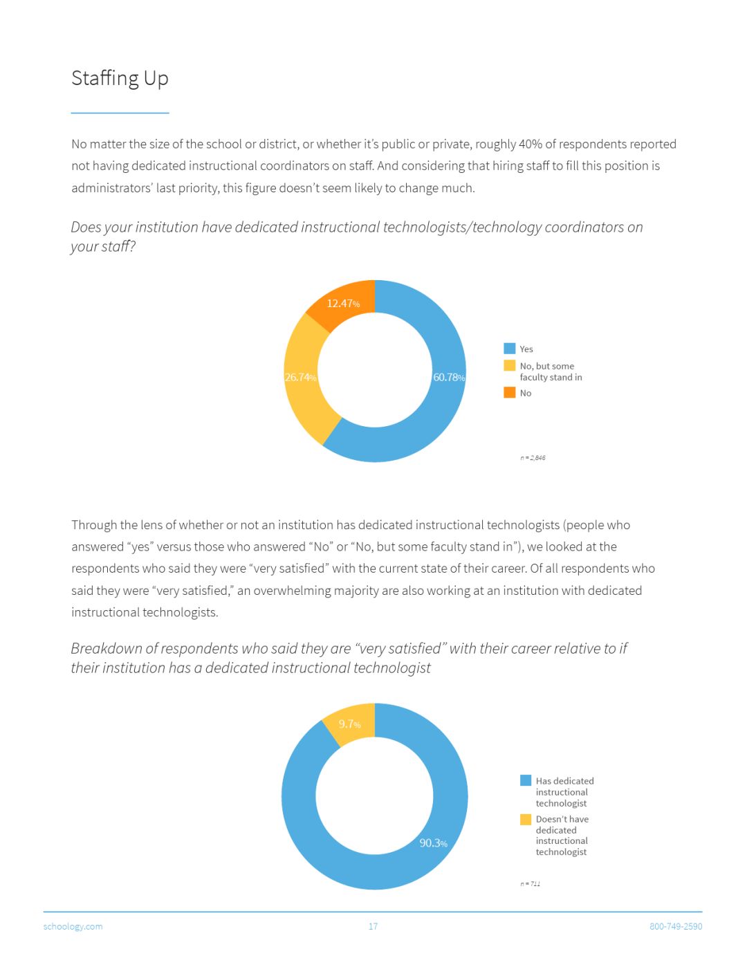 受访者还表示,那些配备专业技术人员的LMS系统(即学习管理系统)有更高的满意度。除此以外,那些配备兼职技术人员的LMS系统的满意度比配备全职技术人员的要低,但是比完全没有技术人员的满意度要高。原因可能是技术人员提供的支持和指导数量的差别。
