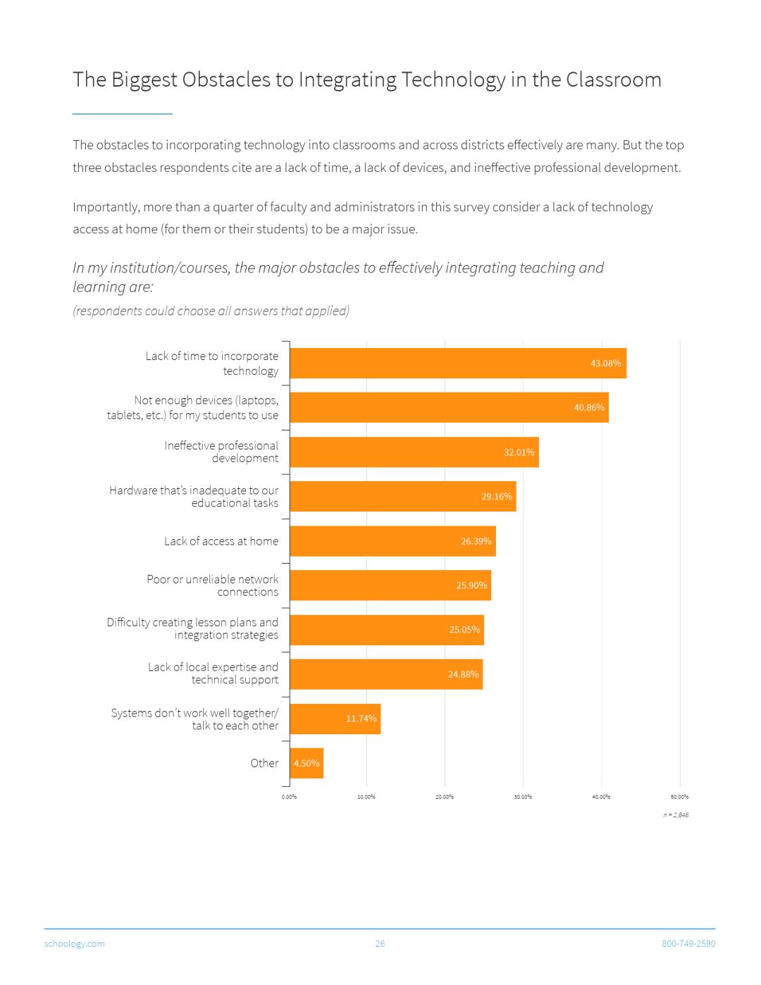 一件有趣的事情是,设备在家不能使用,这一选项的排名比过去有所下降,但Schoology的教学策略总监Kellie Ady认为,移动设备在家的普及帮助大家克服了这一困难。