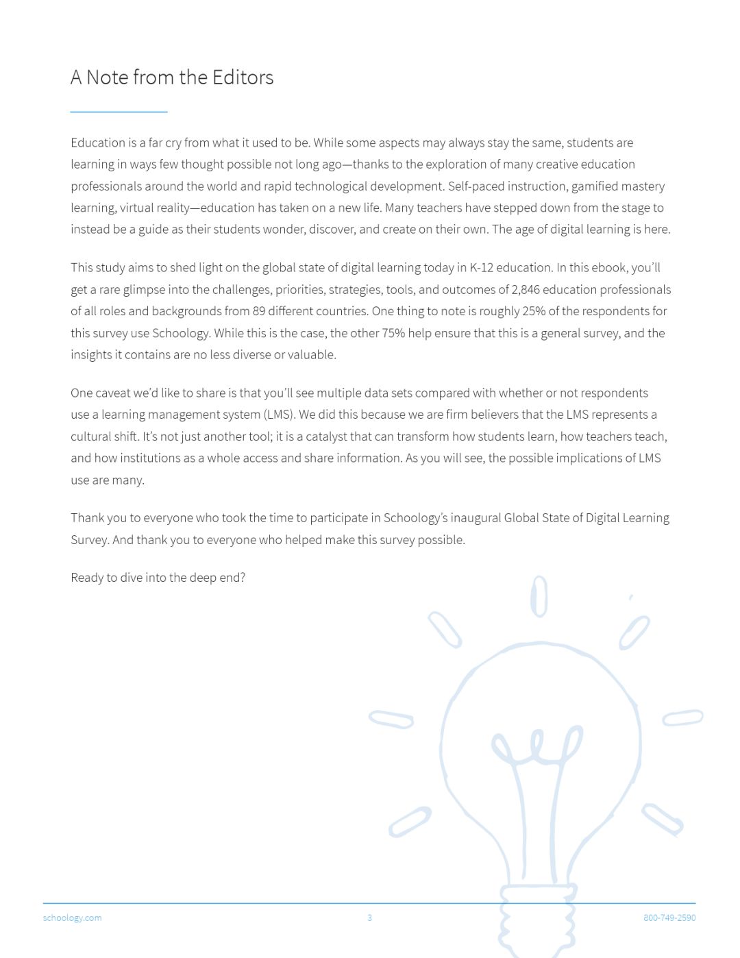 也许你没听说过,Schoology发布了一篇总结K-12的报告叫做“全球数字学习现状”。这是一份通过调查和访谈来自89个国家的2846个教师而得出的报告。