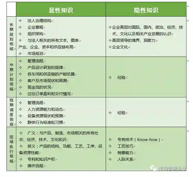 显性知识即固化知识,也是编码知识,主要指用概念、文档、图表、公式、语言文字表达的知识。在传统企业中,显性知识是企业知识中最重要的内容和形式,也是可以转化为信息(bit化)的知识。