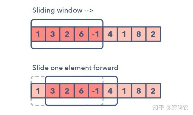 滑动窗口类型的题目经常是用来执行数组或是链表上某个区间(窗口)上的操作。比如找最长的全为1的子数组长度。滑动窗口一般从第一个元素开始,一直往右边一个一个元素挪动。当然了,根据题目要求,我们可能有固定窗口大小的情况,也有窗口的大小变化的情况。