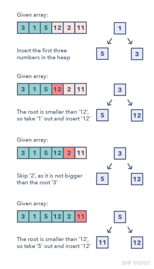 注意这种模式下,咱们不需要去排序数组,因为堆具有这种良好的局部有序性,这对咱们需要解决问题就够了。