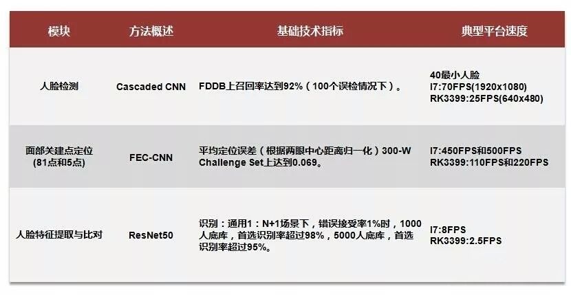 根据中科视拓提供的资料,现已开源的三个模块性能都非常高。它们都使用了深度学习架构,在保证效果的前提下尽可能提升计算速度,以下分别为每个模块使用的算法、技术指标和平台运行速度信息。