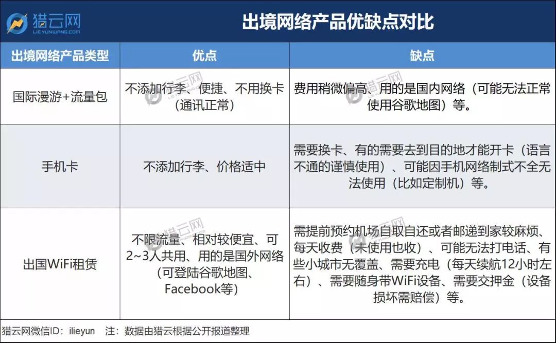 虽然,这三种出境网络产品各有优缺点,但是对于出境WiFi提供商来说,仅提供WiFi服务并非长久之策;若一直提供同等功能设备也不能突显优势。