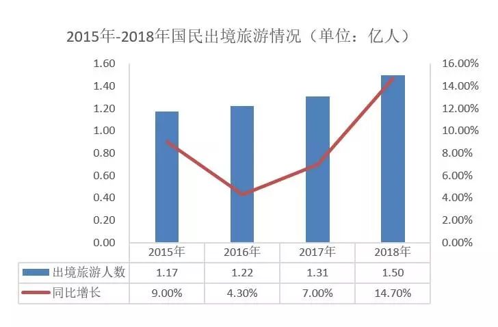 根据国家文化和旅游部公开数据显示,2018年,中国公民出境旅游人数14972万人次,比上年同期增长14.7%。从2015年开始,出境旅游人数逐年增加;2018年,增长幅度最大。