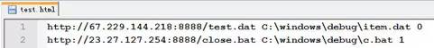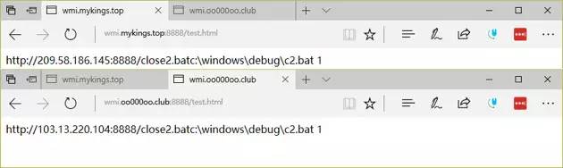 test.html中存放的是可执行文件的下载地址,这些文件会被WMI脚本下载到本地进行执行,且该网页中内容可以根据攻击者需求实时进行更新。如下图所示: