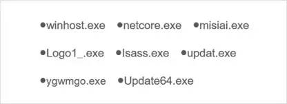 除了通过删除账户对主机的控制权进行争夺外,“隐匿者”也会结束与其他黑客团伙攻击相关的病毒进程。在攻击期间,“隐匿者”所使用的结束进程列表会随着其所收集到的其他病毒数据的增多而不断进行更新。如下图所示: