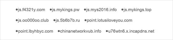 如上图,我们在样本数据中找到相关C&C服务器域名,其域名命名方式与前文所述域名相似,且攻击相关模块数据相同。通过域名查询,我们获取到了更多C&C服务器域名信息。如下图所示:
