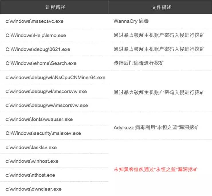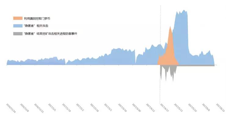 ▲“隐匿者”与利用漏洞挖取门罗币攻击与结束进程事件对比