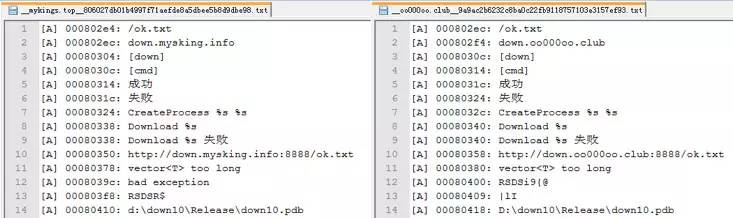 ▲mykings.top和oo000oo.club域名相关样本字符串数据对比
